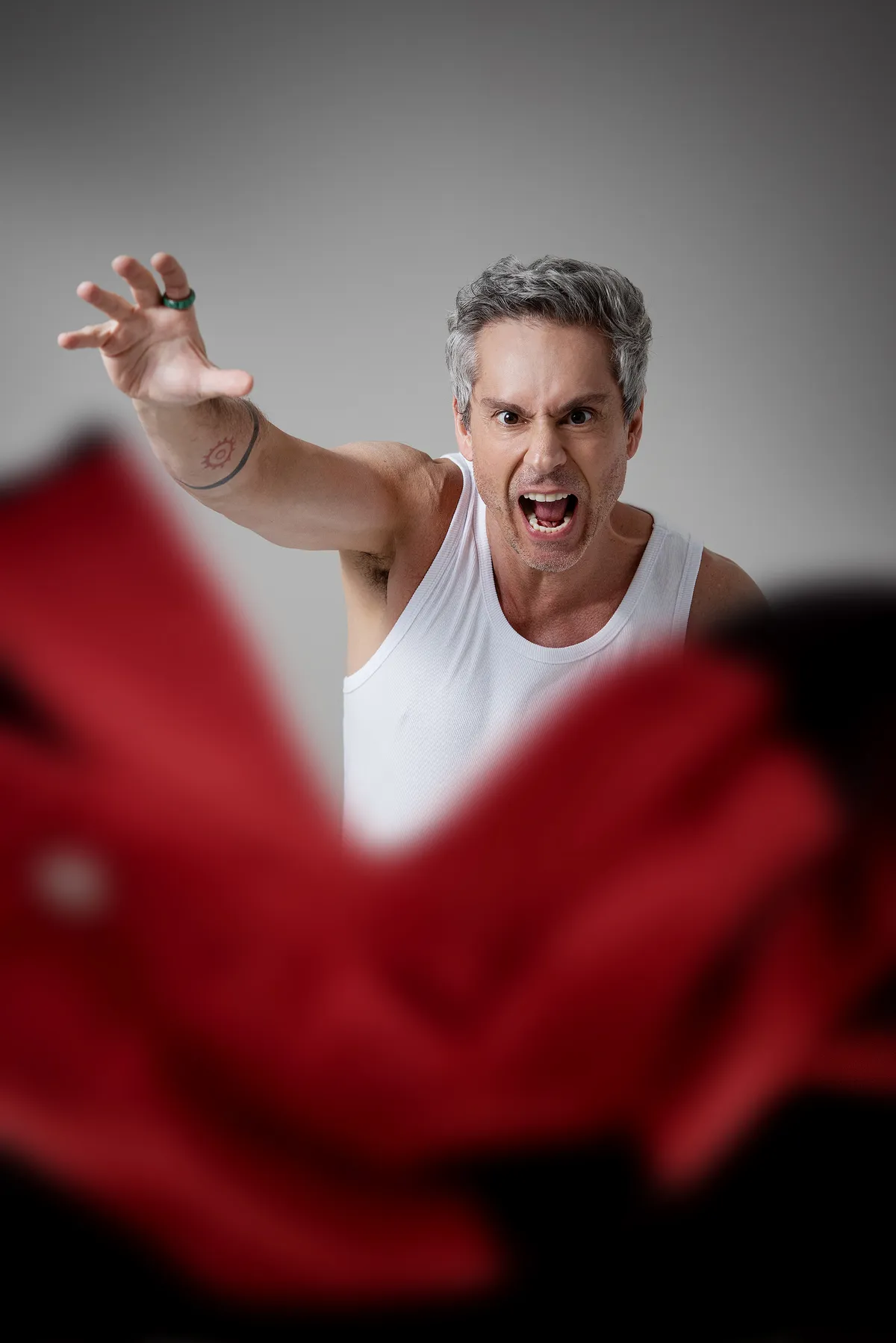 A palavra não seria vaidade, mas saúde. Acho que estou no auge da minha saúde, meu corpo nunca esteve tão bonito. Sou um ex-gordinho e estou muito feliz com os meus hábitos atuais: exercícios, alimentação, dormir cedo. Mas o envelhecimento das peças é natural e inevitável. Eu nunca tinha ido ao dermatologista me cuidar, minha mulher me convenceu. Agora eu vou, levo uns choques, renovo o rosto, dá uma luz legal. Fiz barba todo dia nos últimos nove meses, isso machuca muito a pele. Vou deixar os pelos crescerem. É cruel homem ter que ficar sem barba, essa é a nossa maquiagem.