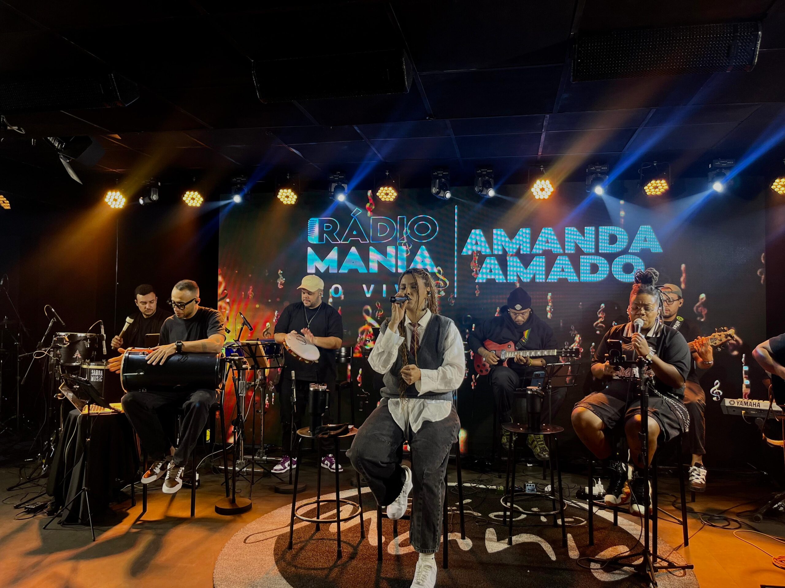 Os estúdios da Rádio Mania, no Centro de Niterói, se transformaram em palco para uma apresentação cheia de sentimento nesta quinta-feira (4). Quem comandou o som foi Amanda Amado, cantora de voz marcante que busca protagonismo no cenário musical do Rio de Janeiro e do Brasil.