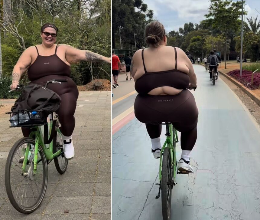 Thais Carla segue compartilhando sua nova rotina, quatro meses após se submeter a uma cirurgia bariátrica e eliminar mais de 52kg. Desta vez, ela mostrou que agora consegue andar de bicicleta e compartilhou a um vídeo praticando a atividade com o marido, Israel Reis, no Parque Ibirapuera, em São Paulo.