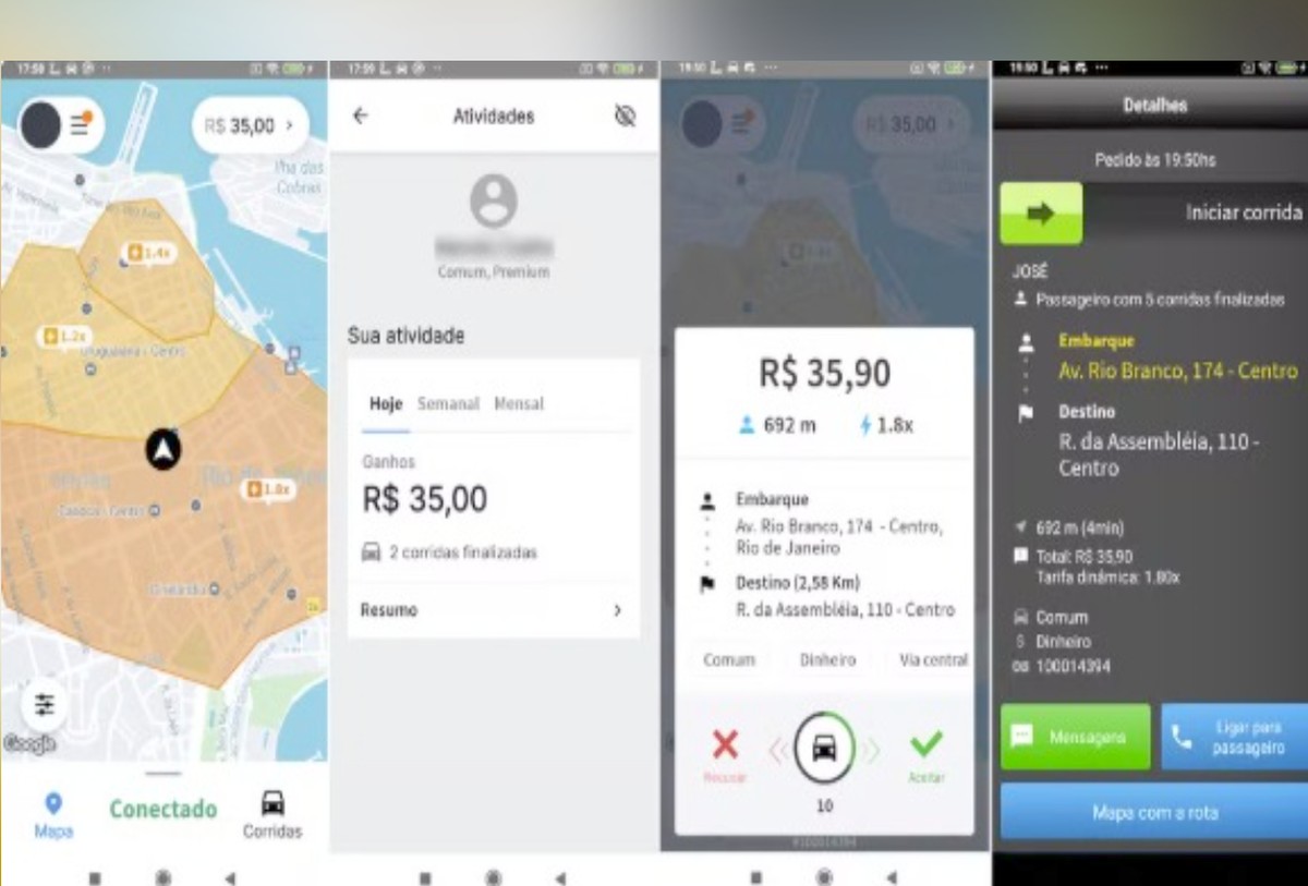 Uma corrida de mototáxi no aplicativo criado pela facção Comando Vermelho, na Vila Kennedy, na Zona Oeste do Rio podia custar até o dobro do valor cobrado por plataformas regulares. Uma simulação feita pela Polícia Civil durante as investigações mostrou a diferença: o trajeto entre a Avenida Rio Branco e a Rua da Assembleia, no Centro, saiu por R$ 35,90 no chamado “app do crime”. Enquanto uma simulação do mesmo trajeto num aplicativo regularizado custaria R$ 15,96. A cada corrida, de 20% a 30% do valor pago pelo passageiro era repassado diretamente para a facção, além de uma taxa mensal obrigatória que era paga pelos mototaxistas da comunidade.