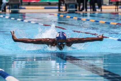 Intercolegial tem competições de natação com recordes e troféus em Nova Iguaçu em dia de forte calor