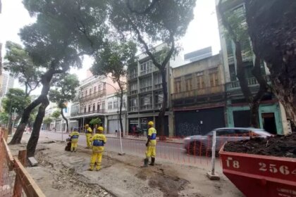 “Atenção, obras na pista”. O aviso na placa mostra que a reurbanização…