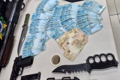 Dinheiro e armamento apreendido na casa do comparsa do PM - Divulgação…