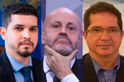 Advogado Eric Fidelis (à esquerda); André Fidelis (à direita); e Antonio Carlos…