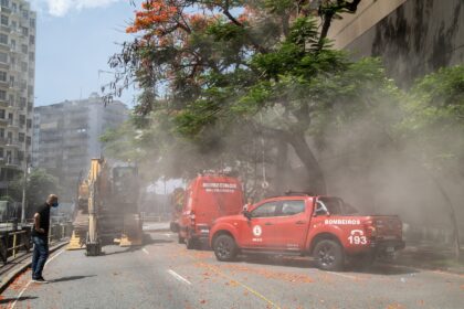 Numa luta contra o tempo, bombeiros de 15 unidades do Corpo de…
