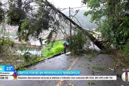 Ventos fortes derrubam árvores e afetam estradas em Petrópolis e Teresópolis A…