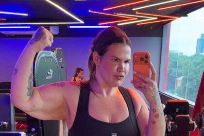 Thais Carla exibe muque na academia após perder 85kg