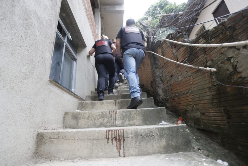 Pelo menos 40 policiais civis estiveram na comunidade. Durante a entrada dos agentes no morro não houve registros de trocas de tiros. O exame pericial durou pouco mais de uma hora. A casa onde as mortes aconteceram fica em um beco, ao lado de um prédio. O acesso ao local é feito pela Rua Barão de Petrópolis. Para chegar até a residência é preciso caminhar por dez minutos por uma ladeira, através de uma escadaria. Nesta última parte, rastros de sangue ainda podem ser vistos 24 horas após a operação do Bope.