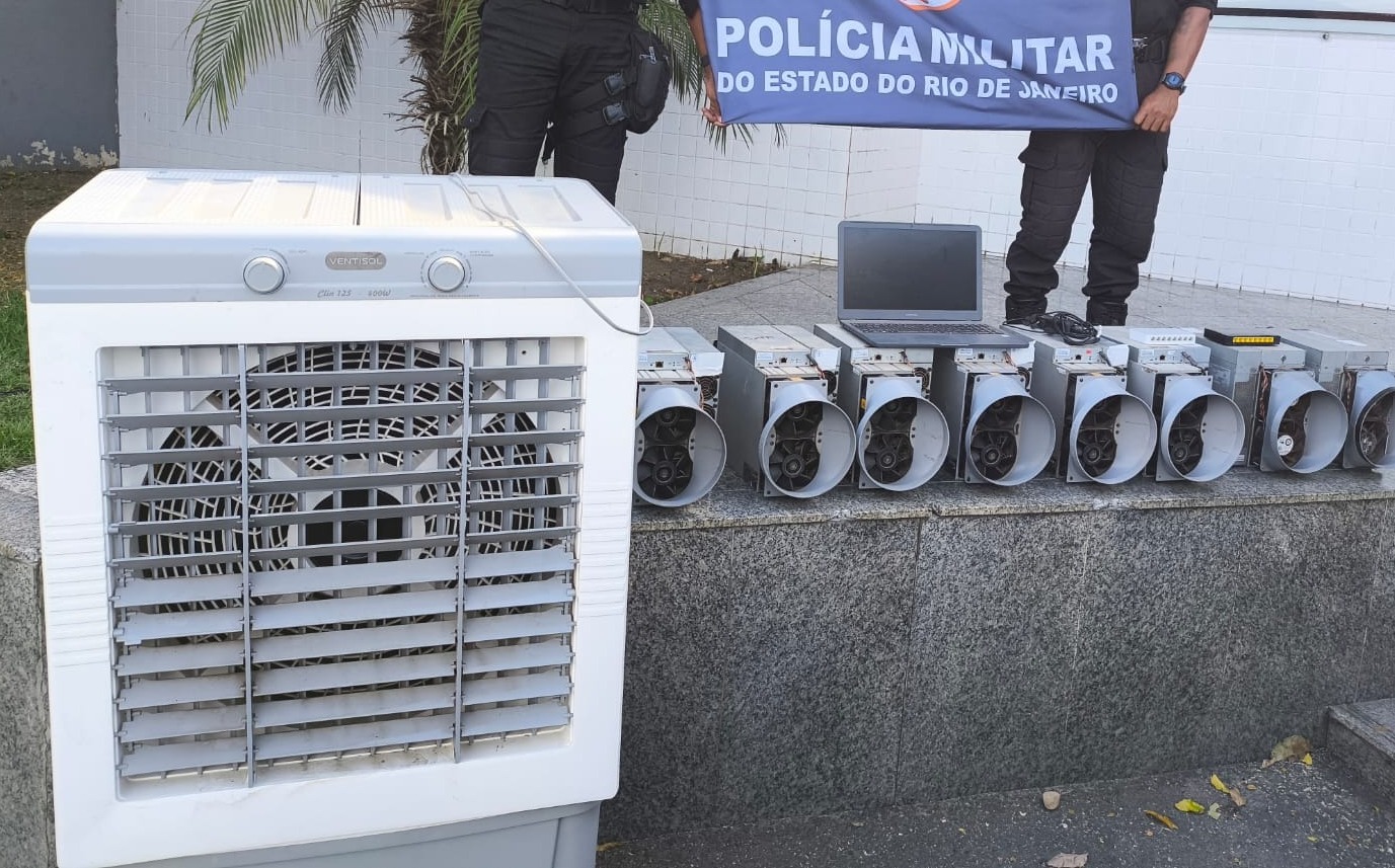 Diante dos fatos, foi acionado o serviço reservado da Polícia Militar para levantamento da propriedade do imóvel. Pela janela, foi possível visualizar uma grande quantidade de equipamentos eletrônicos, que foram identificados como uma central de mineração de criptomoedas. Foram apreendidos na residência um climatizador de ar, oito computadores, um notebook e dois switches (aparelhos utilizados para conectar vários dispositivos).