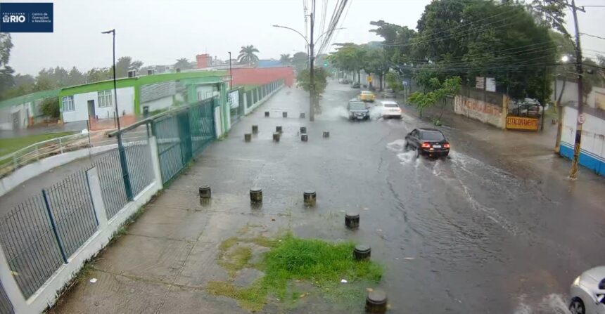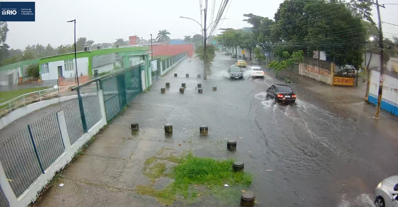 De acordo com o Centro de Operações Rio (COR), equipes monitoram as condições do tempo e possíveis impactos na cidade. Imagens divulgadas pelo órgão mostram chuva intensa na Avenida Ministro Ary Franco, em Bangu.