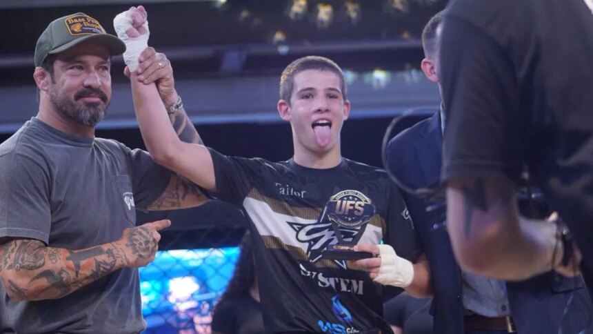 No boxe amador, Enzo Marcello, de apenas 13 anos, entrou em ação e venceu Nicolas Borges por decisão unânime após três rounds. A estreia do filho de Cristiano Marcello foi celebrada com emoção pelo treinador e ex-lutador.