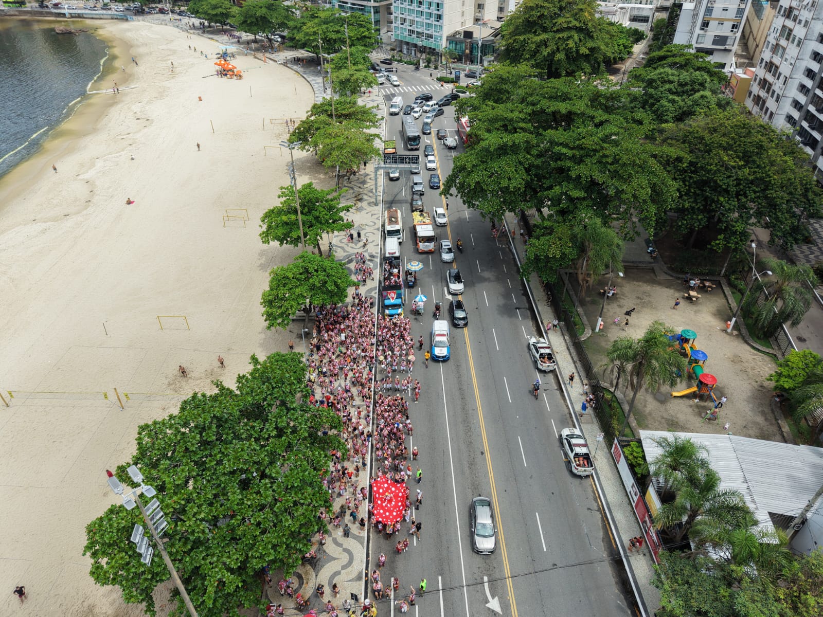 O desfile do bloco Bola Branca contou com o apoio da Divisão de Aeronaves Não Tripuladas (DANT) da Secretaria Municipal de Ordem Pública, que realizou monitoramento aéreo na região da Praça Getúlio Vargas, em Icaraí, garantindo mais segurança aos foliões. A ação acompanhou o deslocamento do bloco pela Avenida Jornalista Alberto Francisco Torres, que transcorreu sem o registro de ocorrências ou alterações, reforçando o esquema especial de ordenamento e vigilância durante o Carnaval.