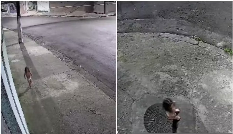Um tempo após ser deixada sozinha, a menina fugiu de casa pelo portão e foi flagrada por câmeras de segurança caminhando descalça pela Rua Peró Vaz, vestindo apenas uma fralda, chorando e chamando pela mãe. Funcionários da Enel, que realizavam manutenção na região, encontraram a criança e improvisaram uma proteção contra o frio com uniformes da empresa.