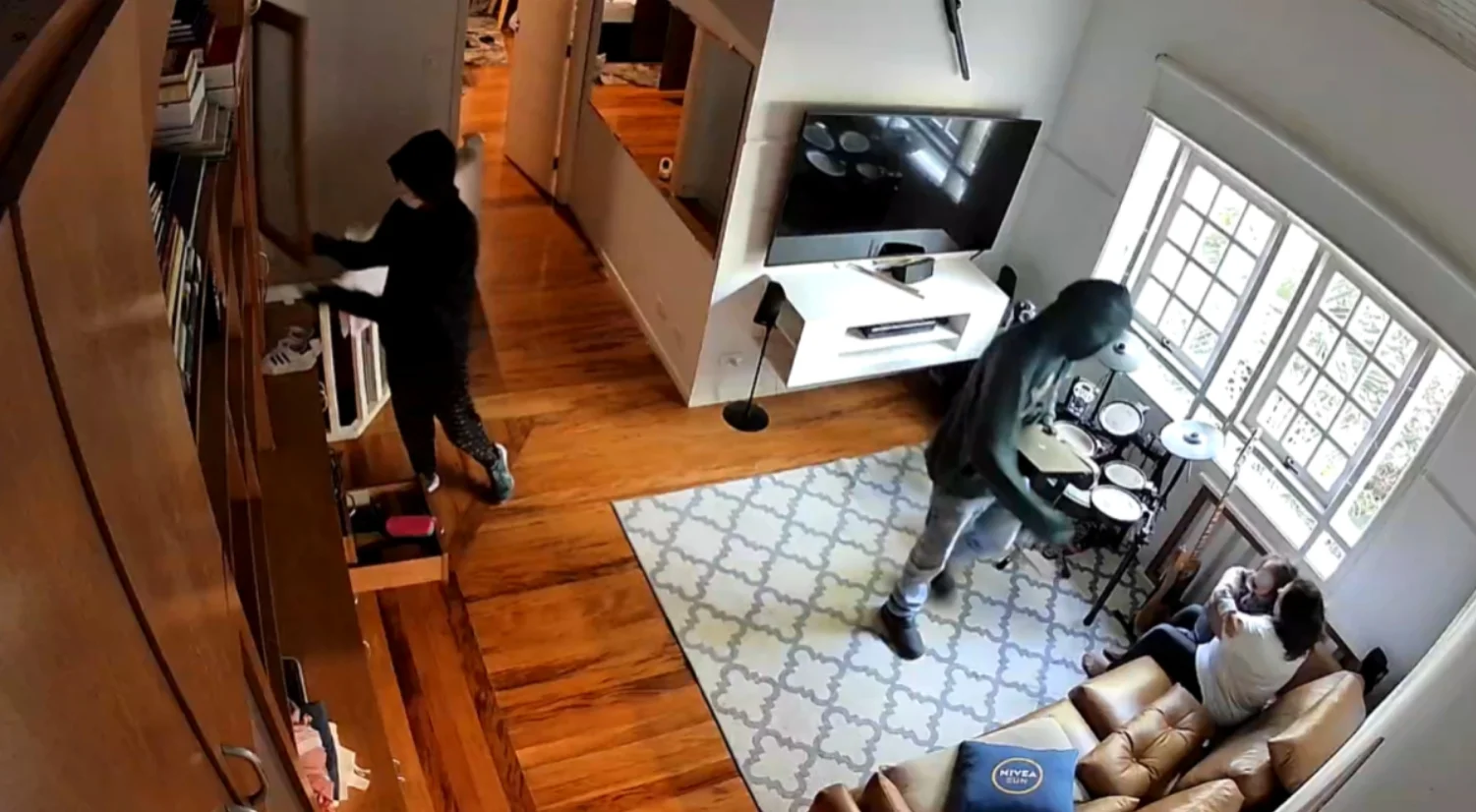 Segundo o boletim de ocorrência, os bandidos anunciaram o assalto logo após entrarem na residência. Imagens das câmeras de segurança mostram os invasores circulando pelos cômodos e revirando gavetas na biblioteca, enquanto a criança, no colo da babá, presenciava toda a ação. A funcionária foi levada ao segundo andar e teve mãos e pés amarrados com lacres de nylon, conhecidos como “enforca-gato”.