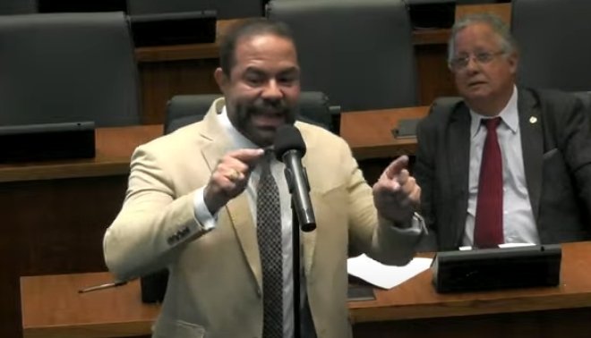 O deputado Marcelo Dino (União) reforçou as críticas e trouxe uma comparação inquietante: