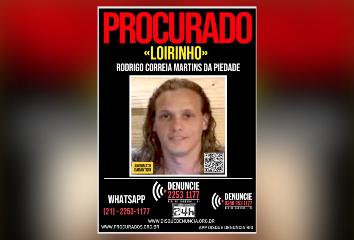 O Disque Denúncia (21 2253-1177) divulgou, nesta quinta-feira, um cartaz para pedindo informações que possam levar à captura de Rodrigo Correia Martins da Piedade, o Loirinho, de 34 anos. Apontado como chefe do “Bonde do Loirinho” — quadrilha que, segundo a polícia, é maior em roubos de carro no Rio — ele tem 14 mandados de prisão em aberto e é, de acordo com as autoridades de segurança, considerado de alta periculosidade. Na madrugada desta quarta-feira, Vinicius Farias de Azeredo, suspeito de integrar o grupo criminoso, foi morto em confronto com policiais civis em Olaria, na Zona Norte do Rio.
