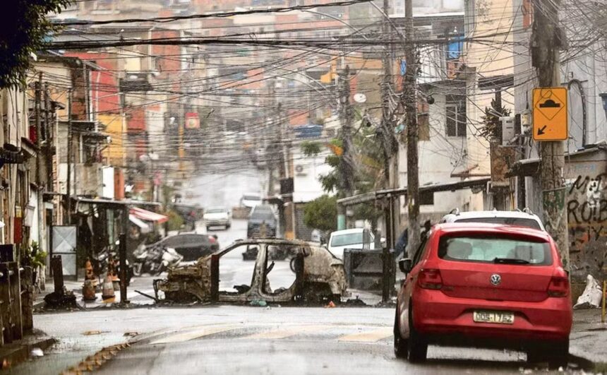 As carcaças de automóveis, barras de ferros, montanhas de pneus e até mesmo de móveis velhos usados como barricadas para fechar algumas vias de acesso à Vila Cruzeiro, na Zona Norte, são sinais visíveis de que se está chegando a uma zona conflagrada. Na Avenida Brás de Pina, fora da favela, um cartaz pendurado na fachada de um comércio fechado exibe a palavra “paz”, enquanto a população tenta manter uma rotina normal, cinco dias depois da operação que deixou 121 mortos e um rastro de medo na região.