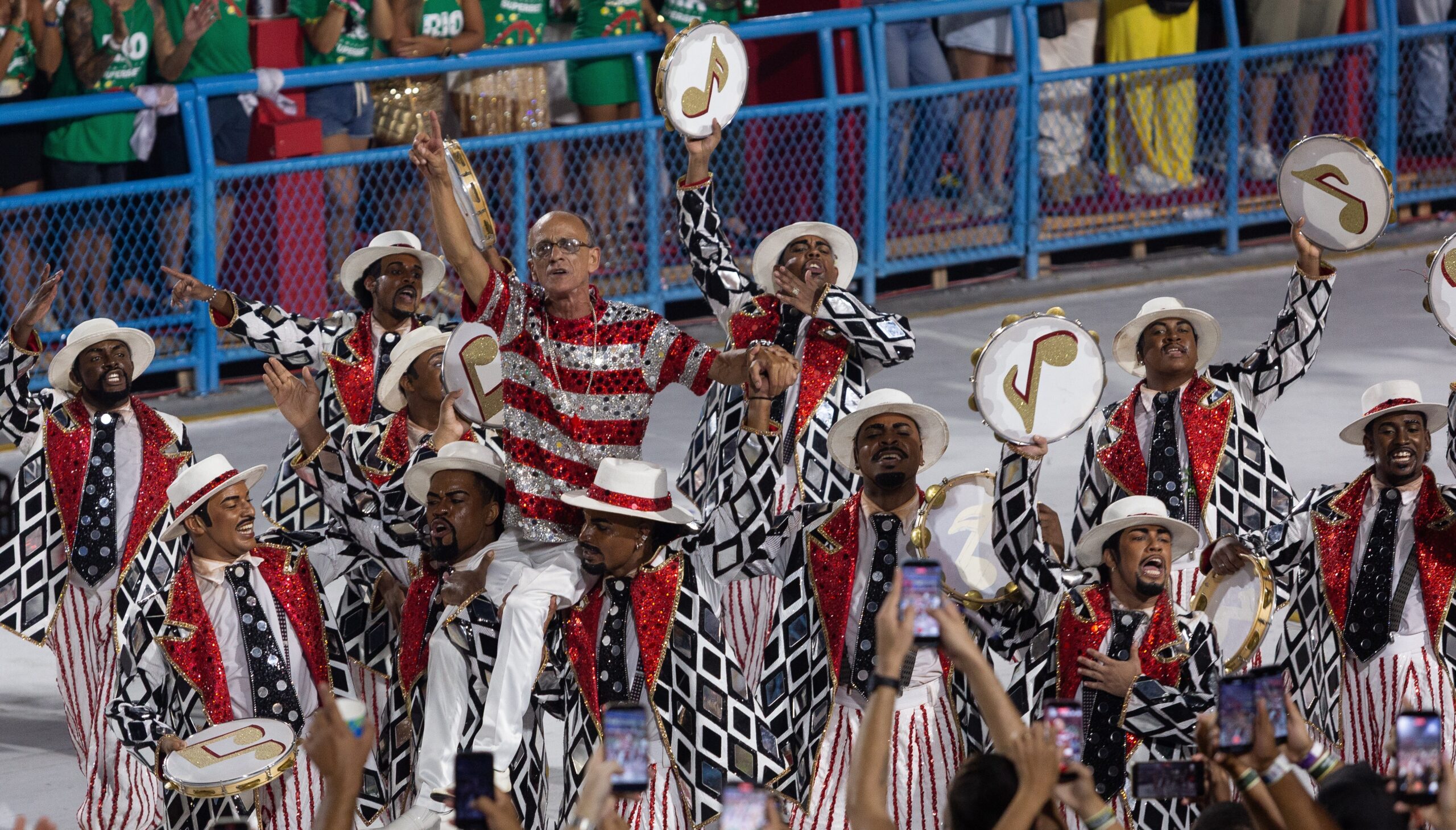 Eleito a personalidade do ano pelo júri do Estandarte, Mestre Ciça — que, além de reger a bateria, foi enredo da Viradouro no último desfile — comemora a premiação, que havia conquistado pela última vez pela bateria da União da Ilha, em 2017.