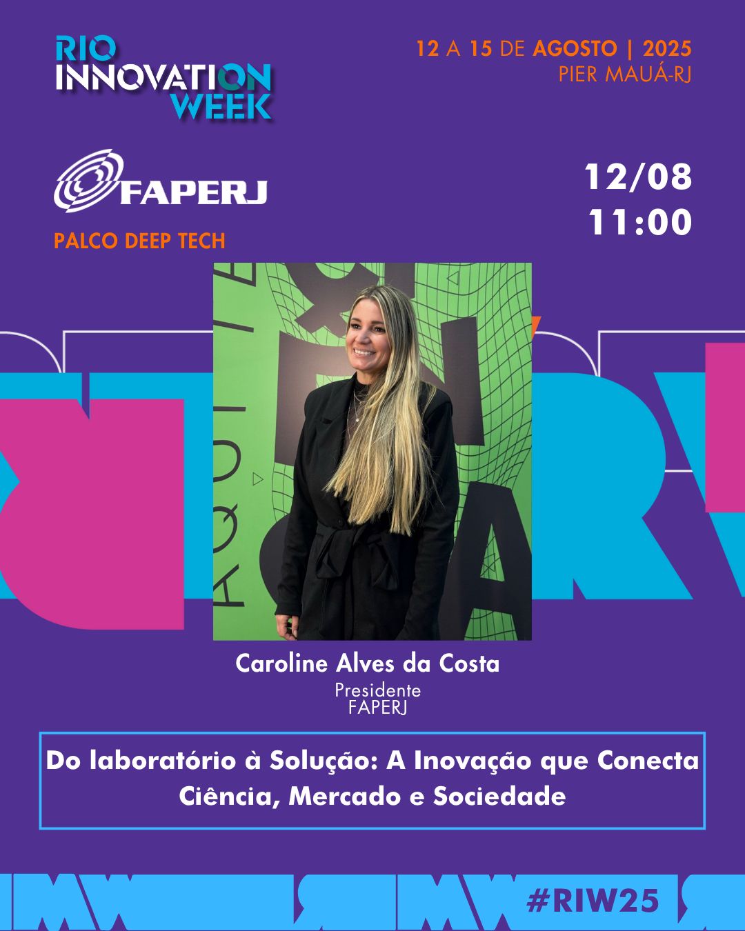“A participação da FAPERJ no Rio Innovation Week é uma oportunidade de mostrar que a ciência fluminense está viva, pulsante e cada vez mais conectada aos desafios reais da sociedade. Queremos aproximar a pesquisa do cotidiano das pessoas e valorizar os talentos que estão transformando o nosso estado com ideias e soluções inovadoras”, afirmou a presidente da FAPERJ, Caroline Alves.