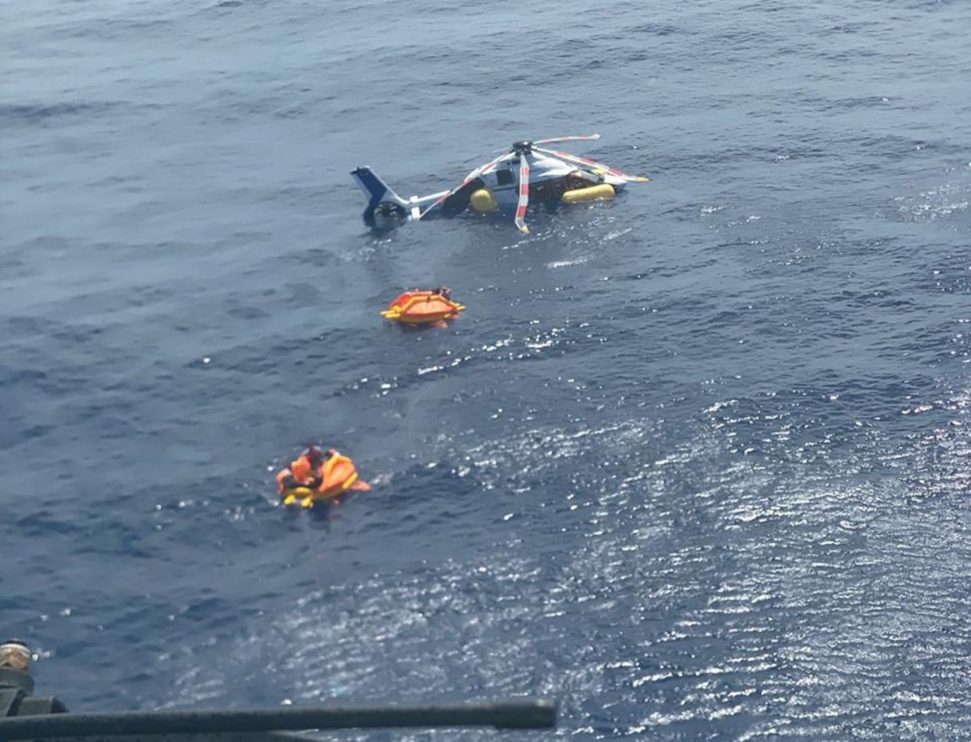 Ocupantes de helicóptero aguardaram pelo socorro em botes após pouso de emergência no mar do RJ