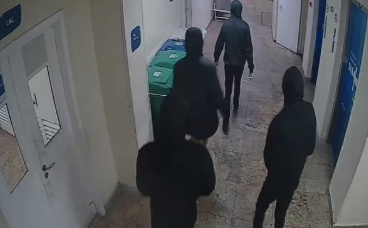 As imagens mostram o bando — que estava com roupas pretas capuz e luvas cirúrgicas — caminhando pelos corredores e chegam a cruzar com alguns funcionários. O grupo foi direto para o segundo andar, onde fica o centro cirúrgico. Ao parar numa recepção, os criminosos parecem estar pedindo informações sobre o paciente ao funcionário que está no balcão.