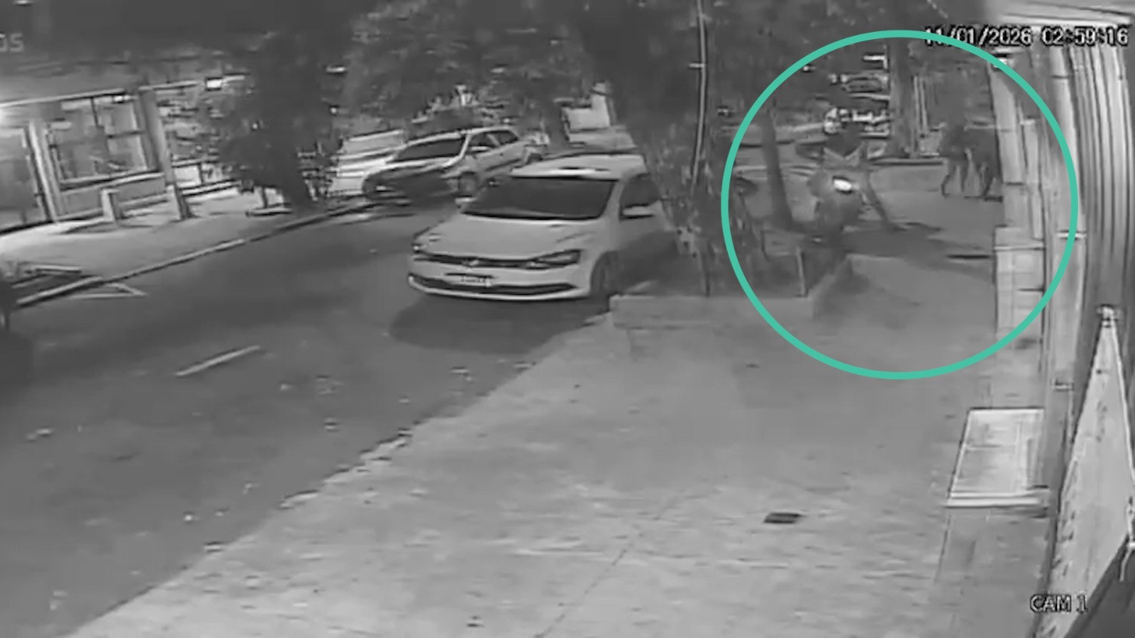 É possível ver os ladrões em fuga. Uma pessoa — aparentemente um homem em situação de rua — que estava se sentando na calçada do lado direito da Visconde de Itamarati se assusta com a movimentação e sai correndo.