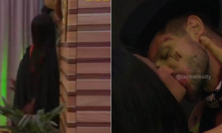 Mas não pararam por aí. Bem servidos, lá foram se beijar novamente. E, por sorte, pararam exatamente quando Alberto Cowboy chegou no mesmo ambiente. Com o apartamento livre novamente, eles até se esconderam entre pilastras para um novo beijo.