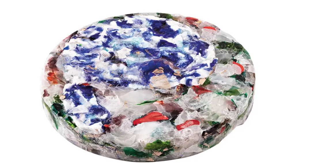 Cacos de vidro de taças e copos de cristal permeiam Tudo que É Frágil Brilha Sem Medo do Esplendor, com sete criações inéditas de Renato Bezerra de Mello. Dispostos em um tablado paralelo ao chão, os estilhaços s ão transformados em desenhos com formas e cores de diferentes espessuras e dimensões.