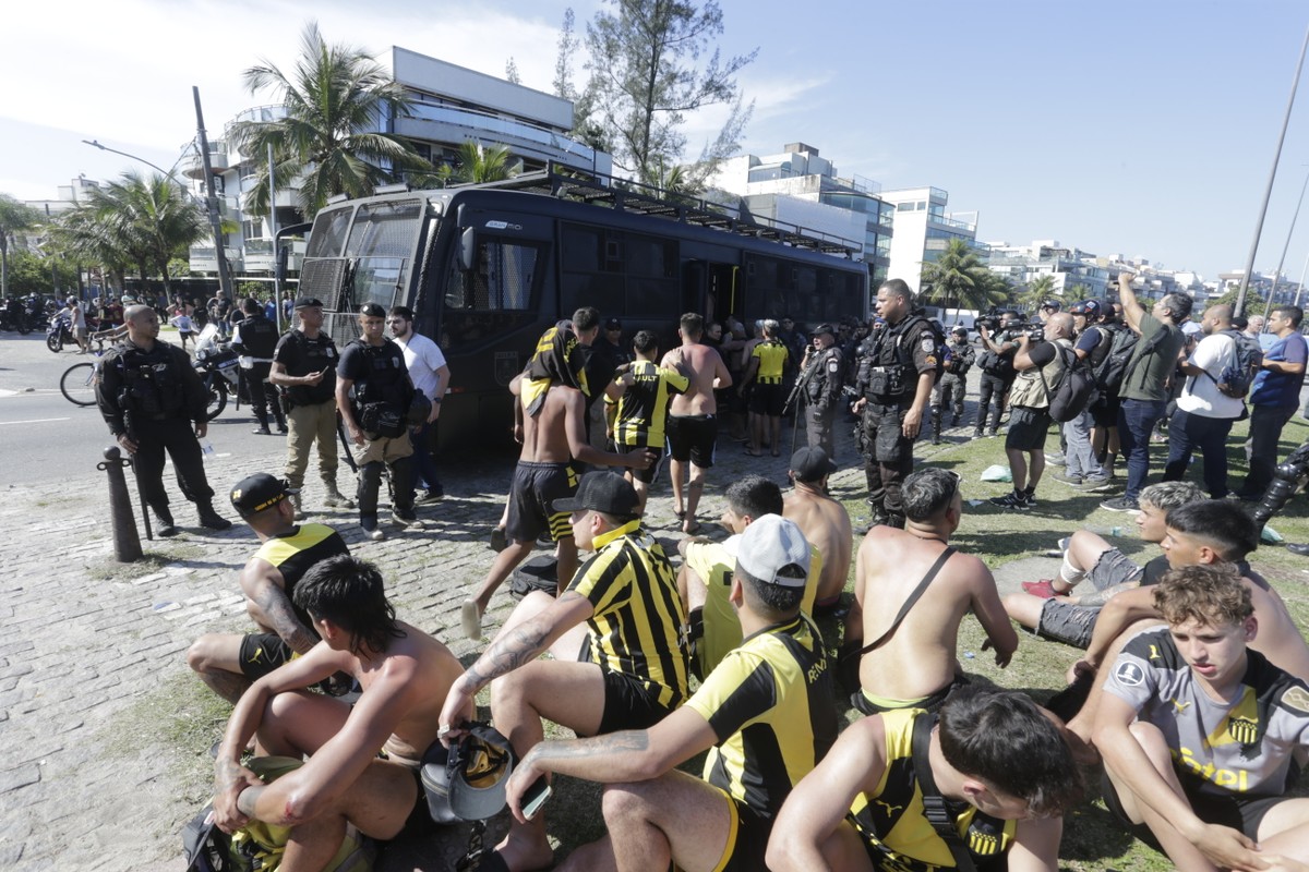Em um despacho, o juiz da 41ª Vara Criminal da Capital informou detalhes da sentença e da denúncia feita pelo MPRJ para instruir o julgamento, em instância superior, sobre um pedido de habeas corpus, feito pela defesa de Ruben Ezequiel Rodrigues Acuna. ” O denunciado, de forma livre e consciente, em comunhão de ações e desígnios com o adolescente associou-se a outros inúmeros indivíduos, todos pertencentes à torcida organizada do ‘Clube Atlético Peñarol’, para o fim específico de cometer diversos crimes, notadamente os delitos de roubo, incêndio, dano qualificado, injúria racial e rixa. Os denunciados, integrantes da torcida organizada do ‘Clube Atlético Peñarol’, compunham verdadeira associação criminosa, cujos membros mantinham vínculo prévio, estável e duradouro entre si, voltado especificamente para a prática de crimes. Além disso, aquela associação criminosa atuava mediante emprego de armas, na medida em que seus integrantes portavam armas de fogo, facões, pedaços de ferro e de madeira, instrumentos que foram efetivamente utilizados na prática dos delitos perpetrados pelo bando. … Ocorre que, por volta das 15h, teve início uma discussão acalorada entre os integrantes da associação criminosa e os funcionários do referido estabelecimento comercial, pois o bando dizia que não pagaria pelos produtos consumidos. Neste ínterim, um grupo de torcedores do Clube Botafogo passou pelo local, circunstância que reforçou os desígnios criminosos por parte daqueles indivíduos, intensificando as agressões. Com efeito, o denunciado, o comparsa adolescente e outros integrantes da associação criminosa começaram a praticar atos de violência contra os funcionários do quiosque e demais pessoas que passavam pelo local, arremessando pedras, garrafas, cadeiras, mesas, caixas de cerveja, entre outros objetos. …Note-se que o acusado não só incendiou uma motocicleta, mas sim várias, com diversos comparsas, os quais agrediam policiais, proprietários das motocicletas e outras pessoas, tudo na intenção de assegurar a empreitada criminosa. Por fim, em razão do concurso material de crimes (artigo 69 do Código Penal), as penas foram somadas e restaram aplicadas em 06 (seis) anos e 03 (três) meses de reclusão e pagamento de 13 (treze) dias-multa”, escreveu o juiz em diferentes trechos do documento.