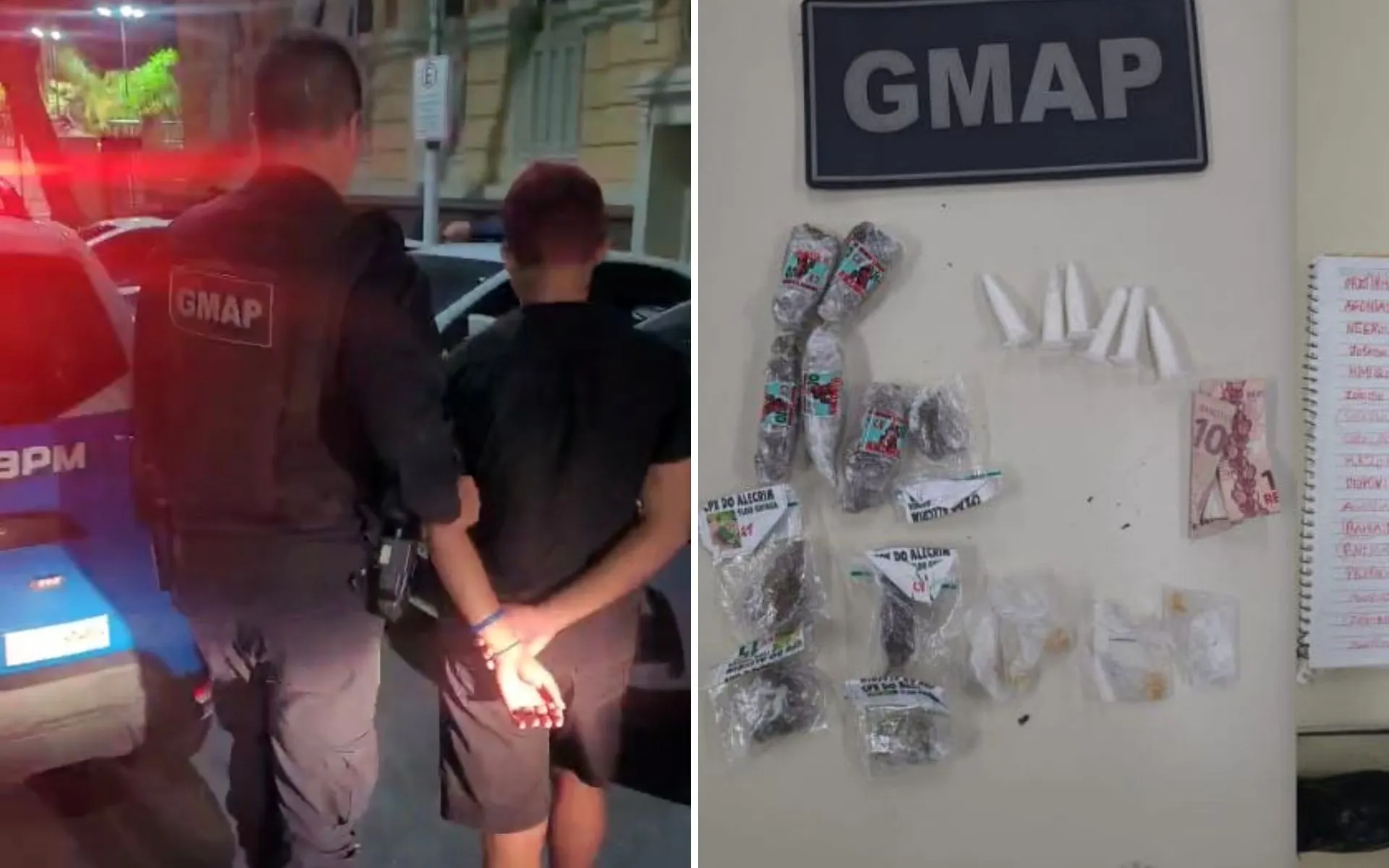 Com apoio do Grupamento de Ocupação Democrática Armada do Território (GODAT), os agentes voltaram ao endereço. O morador autorizou a entrada para averiguação. No interior do imóvel, foram encontrados mais materiais com características semelhantes a entorpecentes, além de um caderno com anotações que podem estar relacionadas à atividade de tráfico.