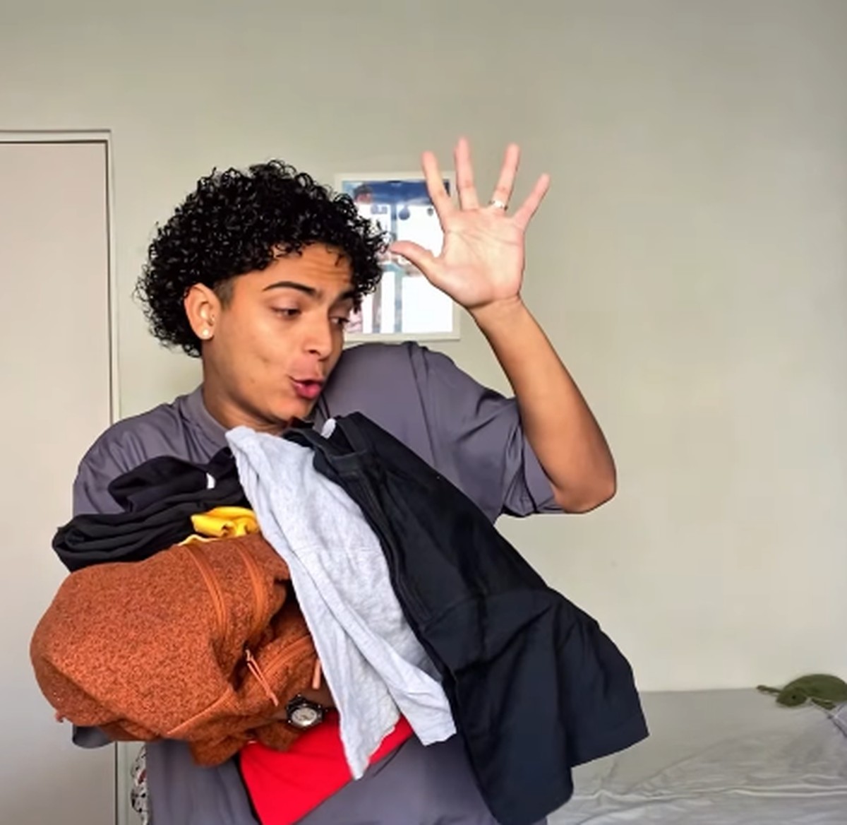 Ator, dublador profissional e jovem aprendiz em um banco, Pedro passou a equilibrar rotina de trabalho e estudos com a criação de vídeos sobre moda acessível. O foco: mostrar que é possível se vestir bem gastando pouco, a partir da moda circular.