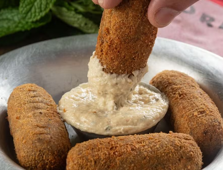 . Pratos: Bolinho de Moela Bolada: bolinhos com recheio de ragu de moela, queijo e pimenta biquinho e Batata Asterix
