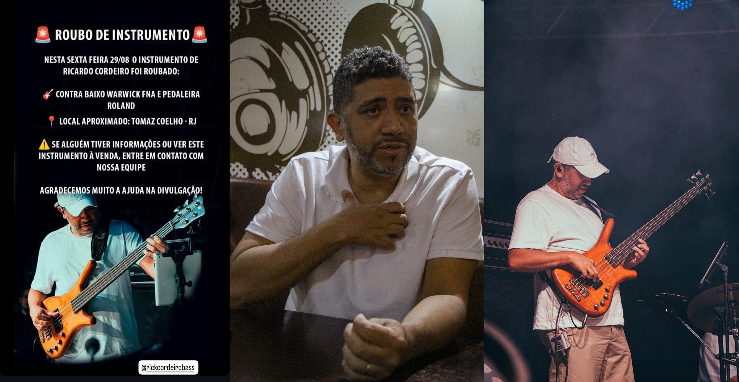 A cena musical carioca tem se unido em uma onda de solidariedade após o roubo do baixo do músico Ricardo Wagner Guimarães Cordeiro, conhecido como Ricardo Cordeiro, de 45 anos. Desde o episódio, artistas, colegas de profissão e fãs têm feito campanhas nas redes sociais na tentativa de recuperar o instrumento, que além do alto valor financeiro carrega uma carga afetiva imensurável para o artista.