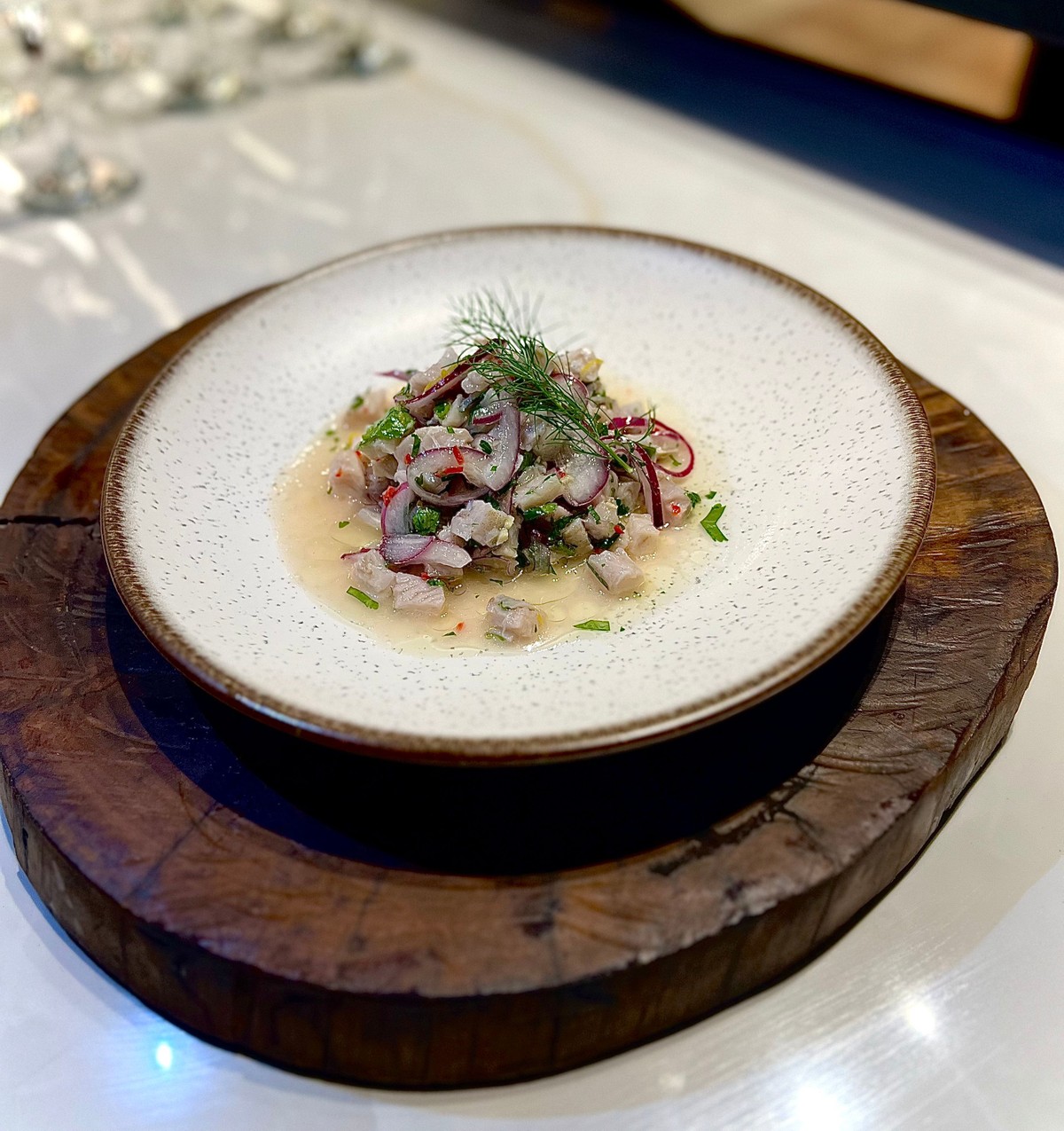 Ceviche de tilápia marinada na cachaça