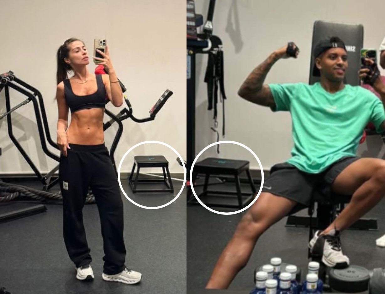 A modelo aproveitou a academia da casa do atacante e compartilhou nas redes sociais uma foto pós-treino. Acontece que Rodrygo também havia compartilhado um registro no local. O banco que aparece atrás de um dos aparelhos é idêntico nas duas publicações. A foto do jogador foi publicada pelo Instagram Condomínio da Fifi.
