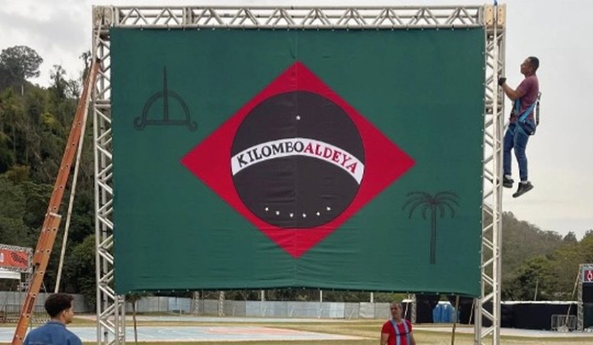 Convidado oficialmente pelo Centro Cultural Quitandinha, em Petrópolis, para integrar a programação de artes visuais do Festival Sesc de Inverno, que está acontecendo em Itaipava, em Petrópolis, na Região serrana, o artista plástico Matheus Ribs foi surpreendido neste fim de semana com a retirada de seu trabalho da mostra. A obra faz uma releitura da bandeira do Brasil, com a inscrição “Kilomboaldeya”, substituindo o lema “Ordem e Progresso” , em referência a territórios indígenas e afro-brasileiros, segundo o seu criador.