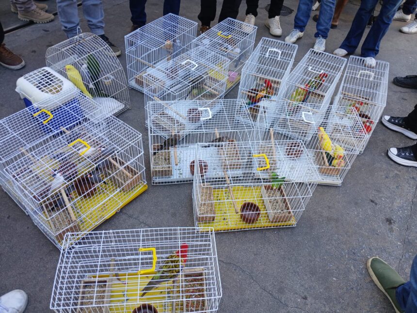 37 aves: seis da espécie rosela – Platycercus eximius; sete Red humped – Psephotus haematonotus; dois Kakariki – Cyanoramphus novaezelandiae; cinco Ring neck – Psittacula krameri; oito Agapornis sp; sete Calafates – Padda oryzivora; e dois Forpus sp.