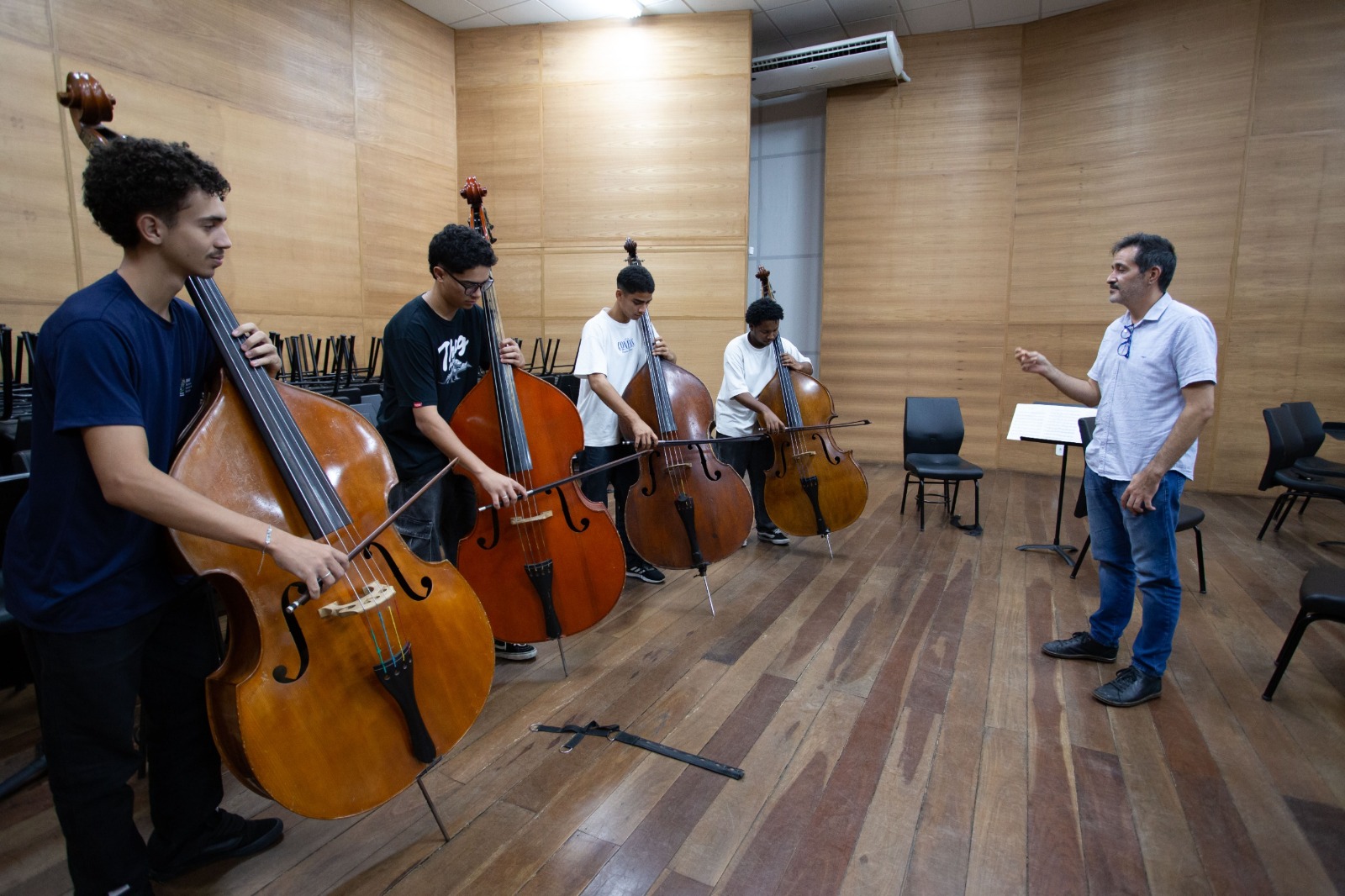 Um dos professores escalados neste ano é o contrabaixista italiano Rodrigo Fávaro, que já conhecia o programa. “Venho com muito prazer, porque o projeto aqui é incrível, tem uma organização e disciplina únicas, são ótimos alunos. Em relação à última vez que estive aqui, senti um salto de qualidade nos alunos, um aprimoramento. São muito estudiosos, e isso é muito importante para quem estuda música, tem que ter a disciplina de fazer o trabalho de casa sempre”, elogia, acrescentando o desafio de formar novas gerações.