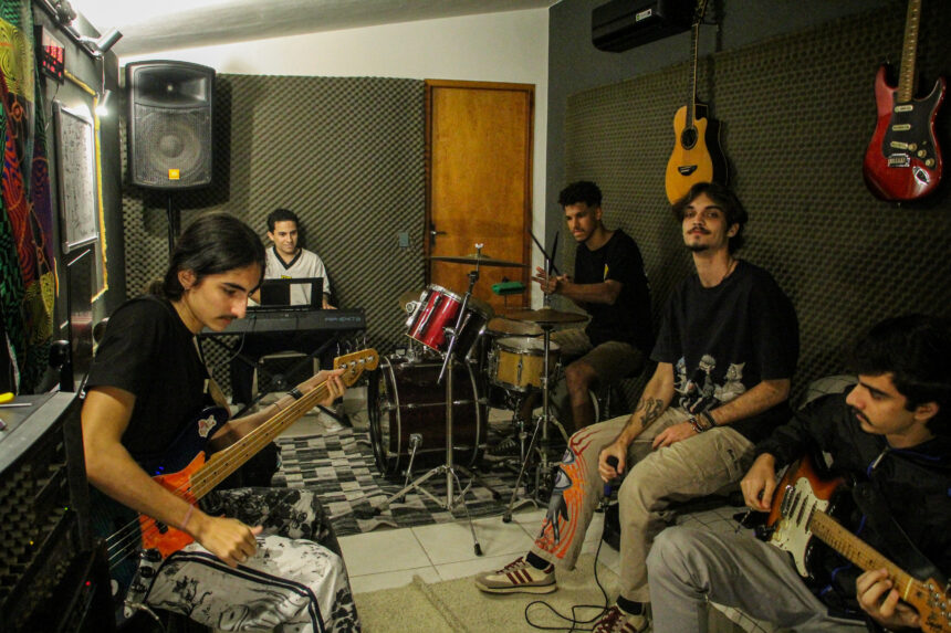 Pedro Miguel é guitarrista. “É bem difícil conciliar tudo, mas, como é uma coisa que a gente gosta, não vira uma parada desgastante. É cansativo no dia a dia, mas acaba que, no final, você vê um resultado muito bacana”, destaca.