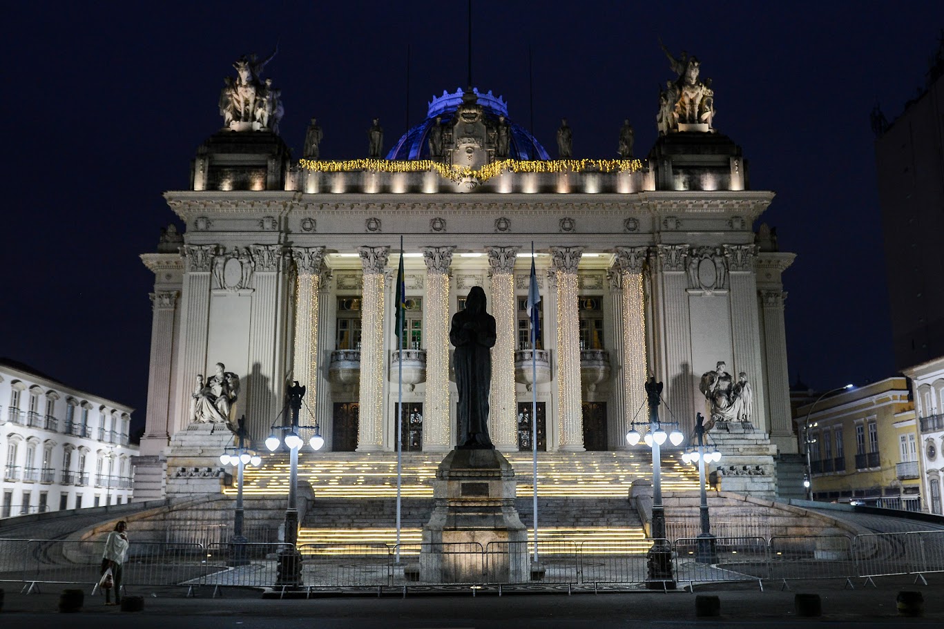 O quase centenário Palácio Tiradentes, sede histórica da Assembleia Legislativa do Estado do Rio de Janeiro (Alerj), ganhou uma iluminação especial de Natal, tornando-o ainda mais reluzente. As centenas de luzes foram colocadas na parte da cúpula do prédio, nas seis colunas de sua fachada, e ao longo de toda a escadaria, ressaltando a beleza da arquitetura do palácio e dando uma ornamentação natalina.