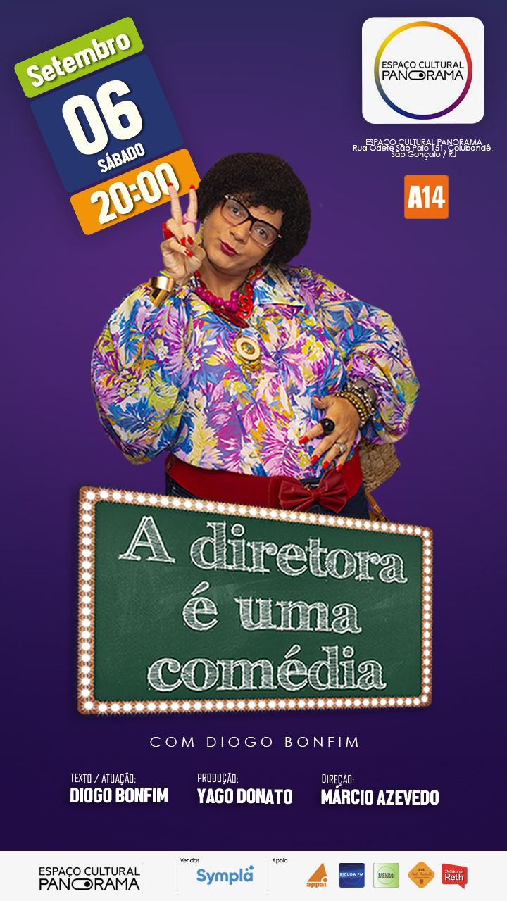“A Diretora é Uma Comédia” é um espetáculo teatral idealizado pelo ator, autor, professor e humorista Diogo Bonfim durante o período de isolamento social, causado pela pandemia coronavírus. Inicialmente, surge como a “Live da Diretora  – no Instagram”, reunindo profissionais da educação de todo o país. Foram quase 2 anos de lives semanais, colecionando momentos irreverentes e muita risada. Em 12/05/2022, com a retomada das atividades presenciais, a live ganha uma montagem teatral inédita, virando febre entre os profissionais da área de educação e reunindo mais de 6 mil seguidores no perfil oficial da peça no Instagram.
