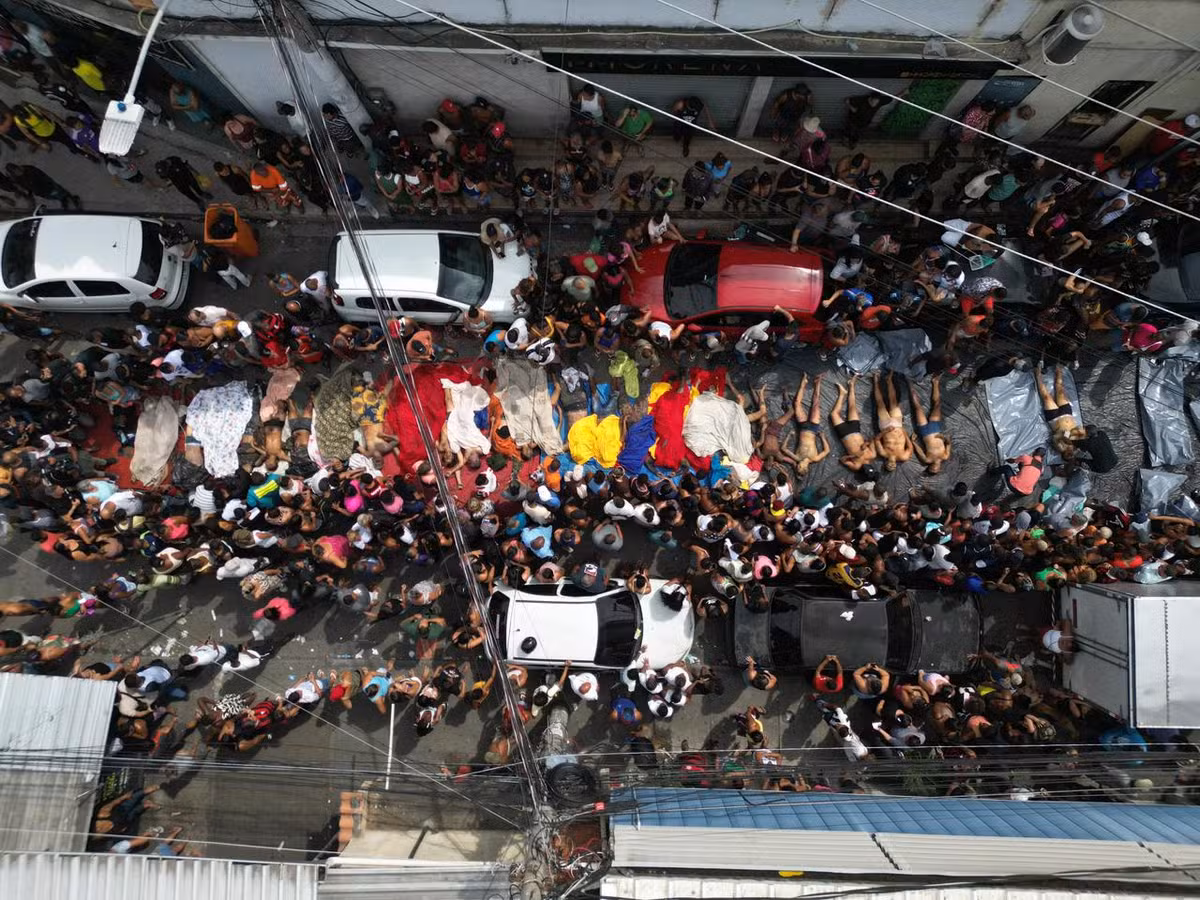 Mais cedo, no local, moradores argumentavam que estavam cortando partes das roupas para facilitar o reconhecimento por parte das famílias. Parentes também queriam que os registros dos corpos fossem feitos sem as vestimentas, para que as lesões ficassem visíveis.