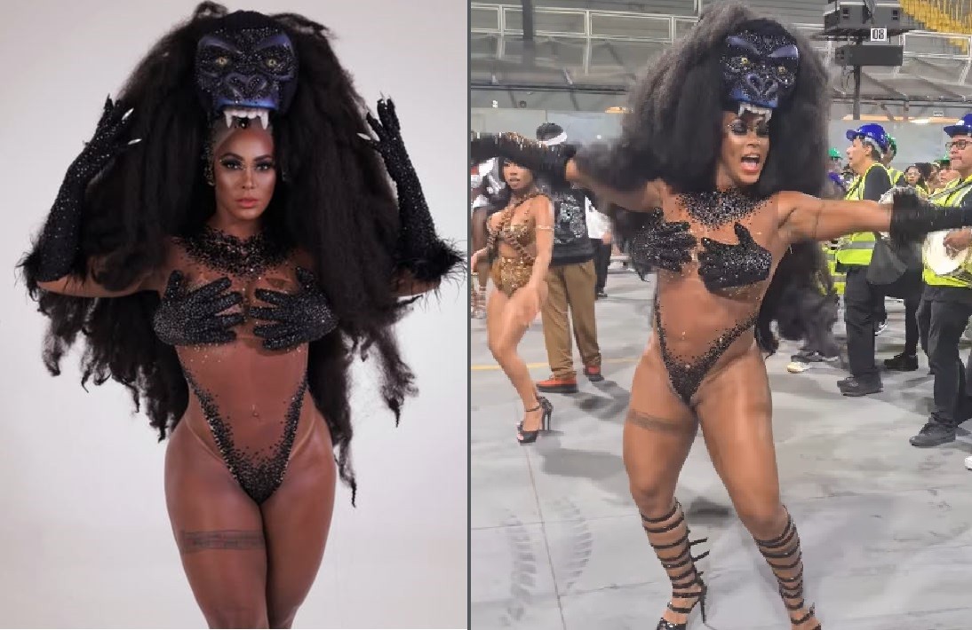 “Eu não tinha sambado com o body antes. Na hora traz uma insegurança, incomoda, mas a gente ignora e vai assim mesmo”, diz ela: “Acho que minha ‘bonequinha’ gosta mais do sambódromo do que eu. Toda roupa ela quer arrumar um jeito de fugir, mas a gente ignora esses imprevistos e finge que nada aconteceu”.
