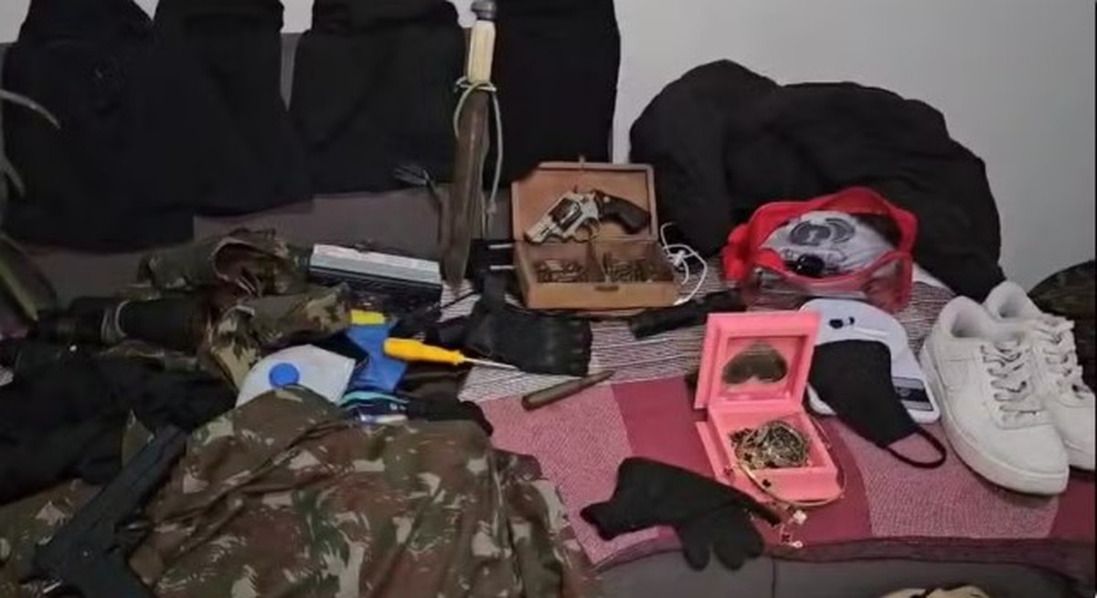 No local onde foi realizada a prisão, agentes apreenderam um revólver com numeração raspada, munições de uso restrito, drogas, balança de precisão, roupas usadas no crime, balaclavas, além de objetos levados da casa das vítimas. Dois veículos também foram recolhidos, entre eles o Fiat Palio Adventure branco utilizado na fuga. De acordo com a 89ª DP, a ação também contou com apoio de agentes da Polícia Rodoviária Federal, (PRF) que ajudou no rastreio do carro usado pelos bandidos.