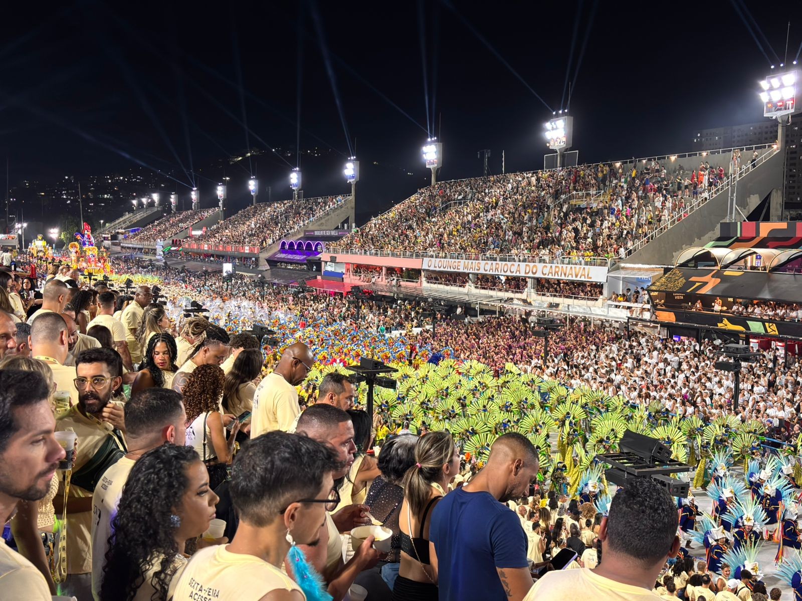 A professora Mariane Caldas, de 26 anos, contou que chegou à Sapucaí às 21h de sábado. Por volta das 6h, quando conversou com o EXTRA, ainda havia animação para ver passar a última escola, Unidos da Ponte.