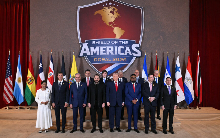 O presidente dos Estados Unidos, Donald Trump, recebe neste sábado, 7, em seu clube de golfe na Flórida, vários governantes da América Latina e do Caribe para a reunião de cúpula “Escudo das Américas”, que abordará o crime organizado, a imigração ilegal e a interferência estrangeira no continente.
