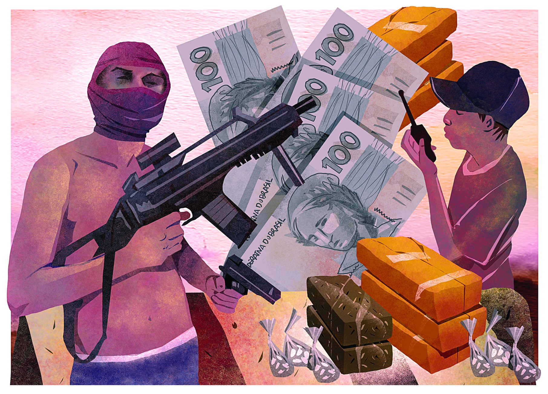 Existem também funções auxiliares, como a do “formiguinha”, que transporta pequenas quantidades de droga com rapidez para lugares; o “fiel”, encarregado de circular pelas ruas durante a madrugada para observar o território e identificar movimentações consideradas estranhas; e o “sabadão” ou “malandrex”, a depender da comunidade — que são jovens recrutados apenas aos fins de semana ou em períodos de grandes eventos.