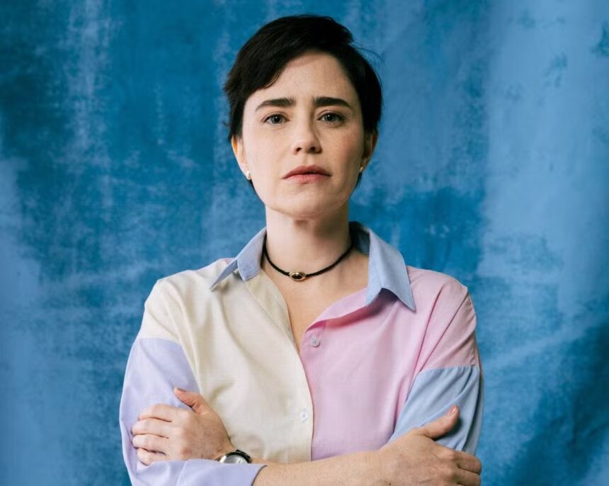 Lorena (Alanis Guillen) é filha de Ferette (Murilo Benício) e está sempre contra o pai. Tem ideias feministas e não concorda com o estilo de vida luxuoso da família — Foto: Globo/ Victor Pollak