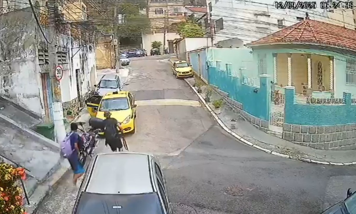 Um vídeo compartilhado nas redes sociais mostra o momento em que três criminosos são baleados enquanto tentavam fugir do Complexo do Lins, na Zona Norte do Rio, na manhã desta sexta-feira (12), quando as polícias Civil e Militar realizavam uma operação conjunta na área. O relógio marca 6h24 quando quatro homens armados descem de uma escadaria em direção a um táxi que estava estacionado. Um dos bandidos abre a porta do veículo, rende o motorista e, então, começa o tiroteio.